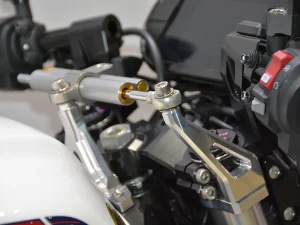 - 造型銳利的後移腳踏套件,營造出更具戰鬥感的騎乘姿勢。