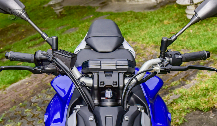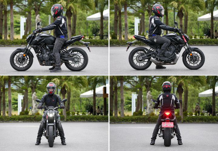 新款 MT-07 雖然傳承過去相當平易近人的座高,不過在油箱重新雕塑之後,更具肌肉感的線條也同時讓車身更加寬大,而這項改變連帶影響到騎士的足著性。以筆者 173 公分的身高,以往可以雙腳平貼地面,不過在新款的 MT-07 上需要稍微踮腳。而加高加寬的車把也讓騎乘三角更加舒適,一解長時間騎乘的疲勞。