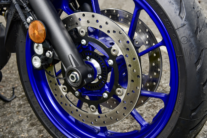 原廠配胎為 Michelin 的 Road5 旅跑胎,高海陸比以及雙膠料的成分讓 MT-07 同時兼顧多重天候以及耐磨性。