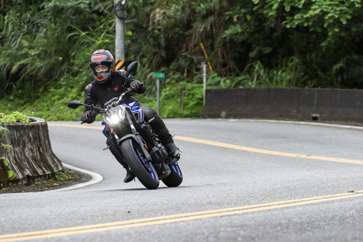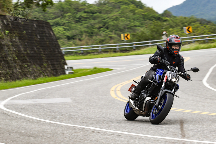 當然,有賴台灣優異的道路品質,路面不平與些許坑洞都是日常。而新款 MT-07 經過阻尼的重新設定後變得較為硬朗,因此在路感方面也較為清晰。與舊款相比,會明顯感受到強化過的運動調性。
