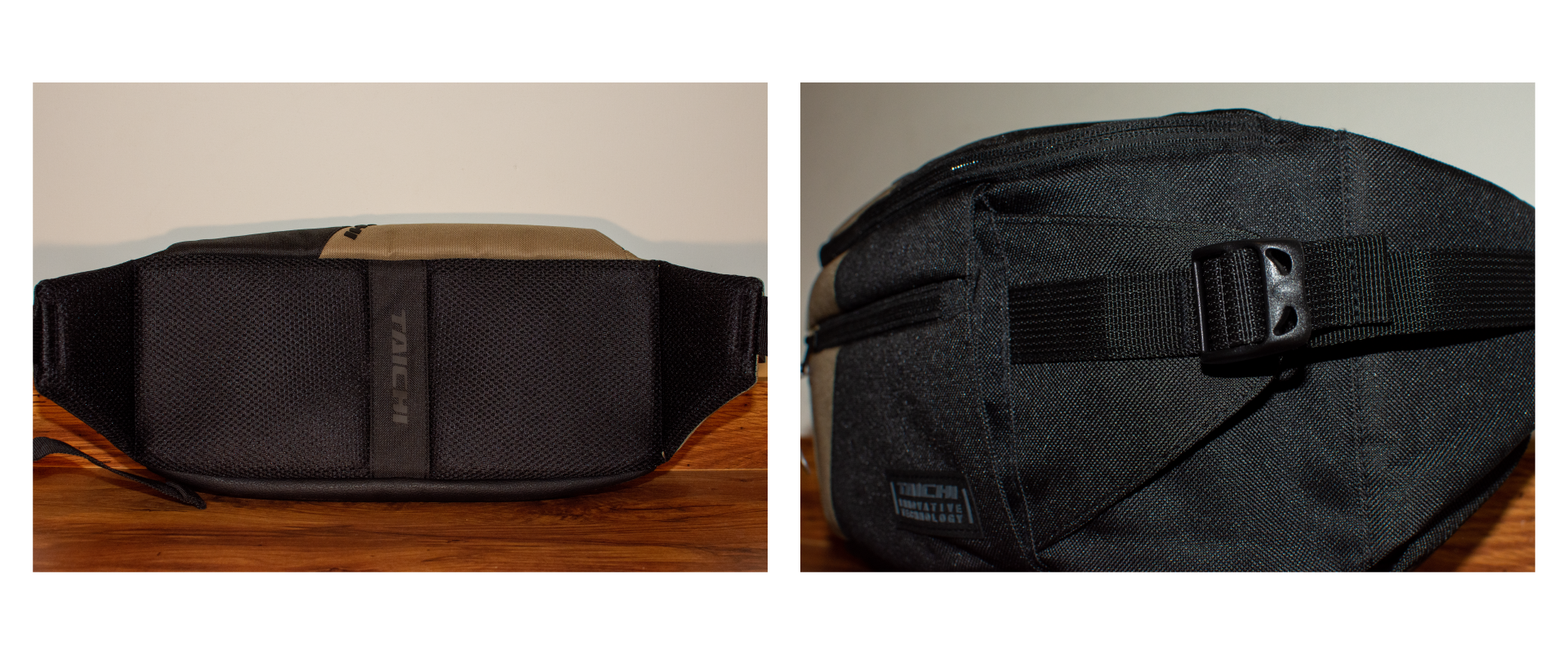 隔間總共五格的配置在分類物品上方便不少,前後上下四面又有軟墊能保護攜帶的物品。此外,兩側拉繩能在腰包較空時束緊包身,有效避免鬆垮感這點能感覺到設計的用心。