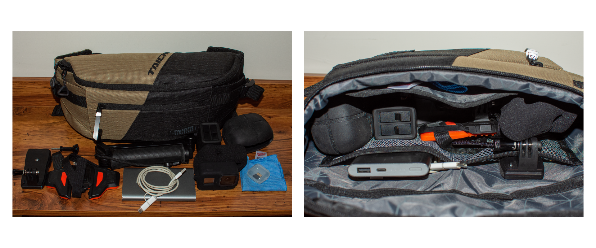 平時我喜歡騎車、爬山、露營等戶外運動,也習慣帶著GoPro為這些活動留下影像紀錄,但手邊的背包、相機包對於運動相機周邊顯得有些太大,於是打算找個小包來攜帶它們。