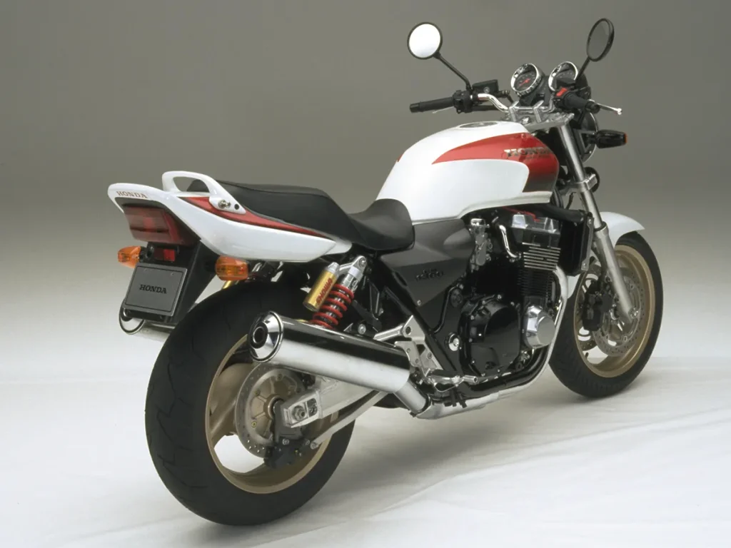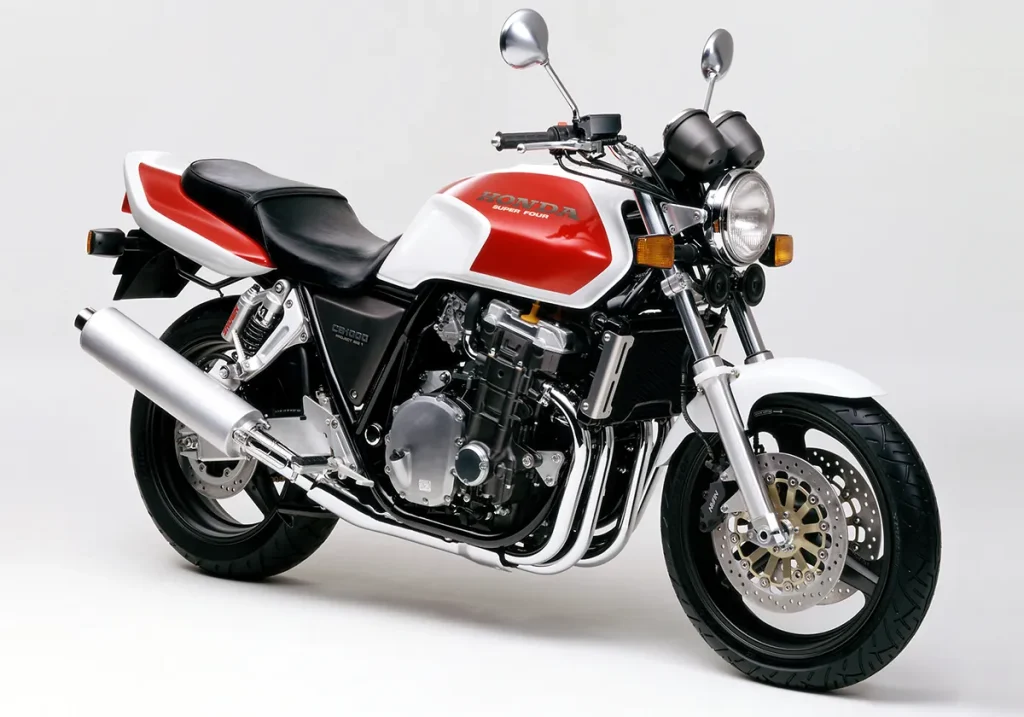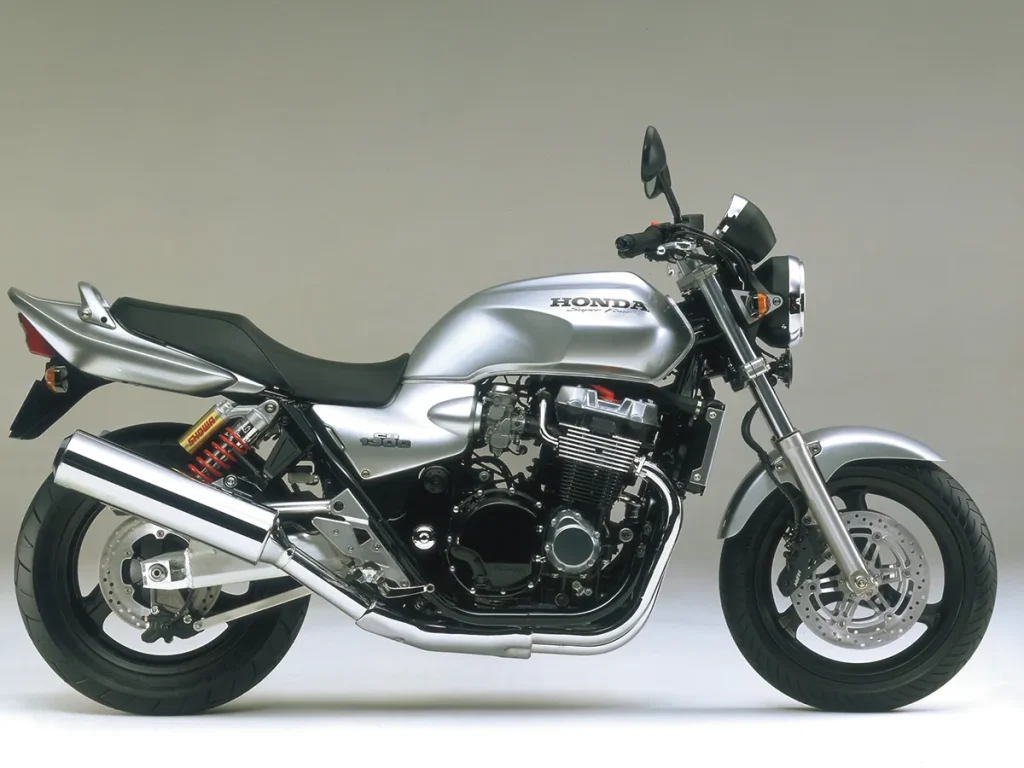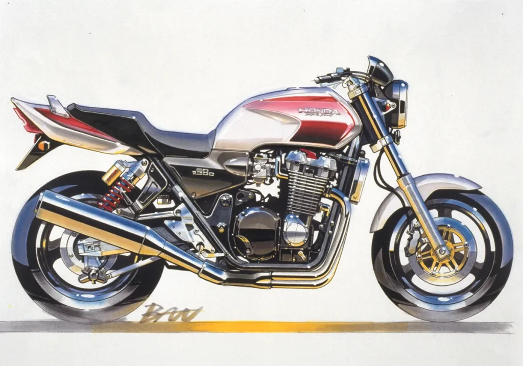 彼時,HONDA雖然嘗試以CB-1探索新的標準街車風格,但內部早已啟動了一個名為「PROJECT BIG-1」的計劃,旨在融合經典CB系列風格與現代科技。1992年,搭載CBR1000F系列引擎,結合鋼管雙搖籃車架、雙避震後懸吊系統和復古設計元素的CB1000SF(Super Four)應運而生,成為街車風格的先驅。