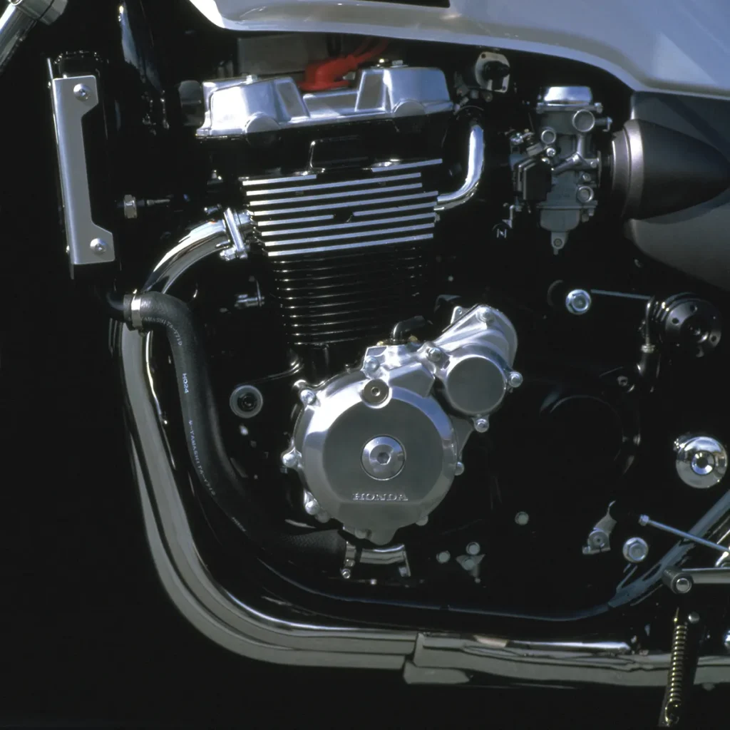 CBR系列主打「超級空氣動力學」概念,追求極速和高速穩定性,是現代旅行跑車的先驅,而非賽道利器。然而其搭載的水冷DOHC四缸引擎,融合了HONDA當時的尖端技術,例如750cc車型獨有的凸輪齒輪傳動系統,展現出鮮明的HONDA風格。