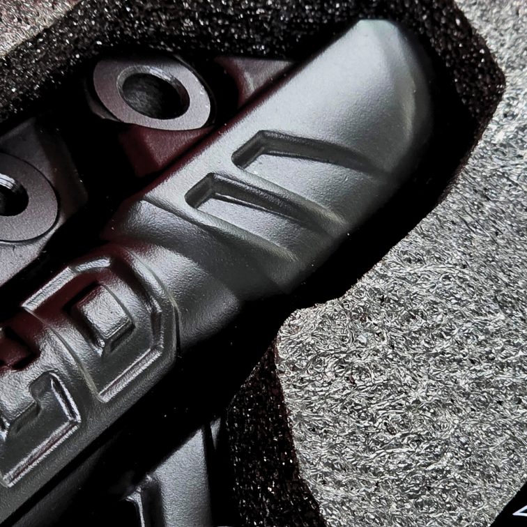 為了打造兼具低調外觀與騎乘感升級的 [CC 重力鑄造原廠型前叉],CCD 曾面臨模具設計的兩難。原先設計在外管上的「C.C.D」品牌字樣,因英文字母間微小的縮寫點「 . 」 ,導致鋁液在重力鑄造的流動過程中,難以完美填充,容易產生氣孔或流紋。