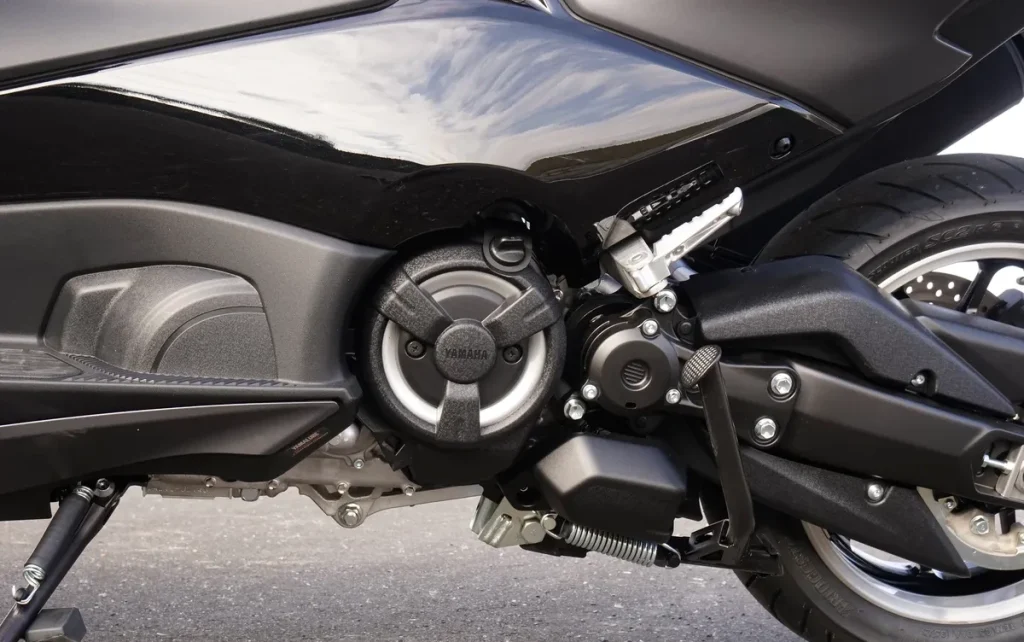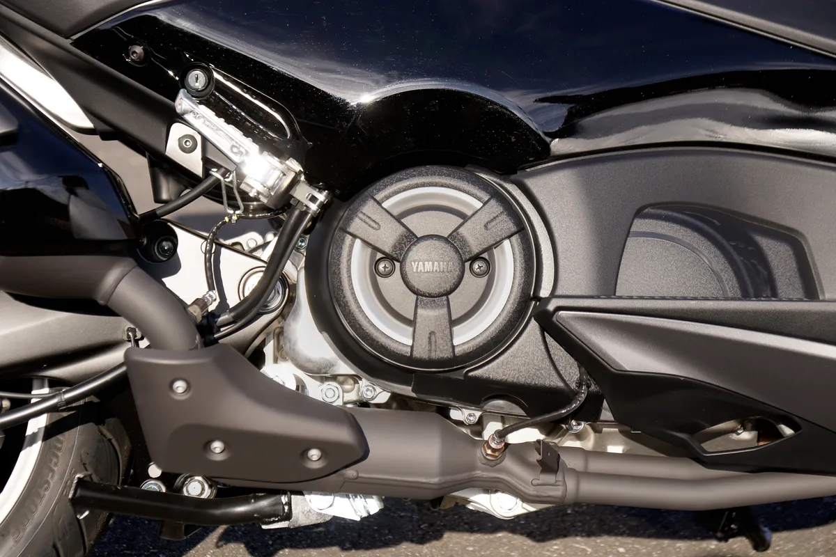 最新 2026 年式 TMAX560 TECH MAX,針對環保法規進一步優化 ECU 設定,並採用全新設計的進氣喇叭口(Intake Funnel),排氣管接合處則改以 TIG 焊接方式處理。在不犧牲原有性能的前提下,排氣聲浪更為清澈,油門反應也更加線性。