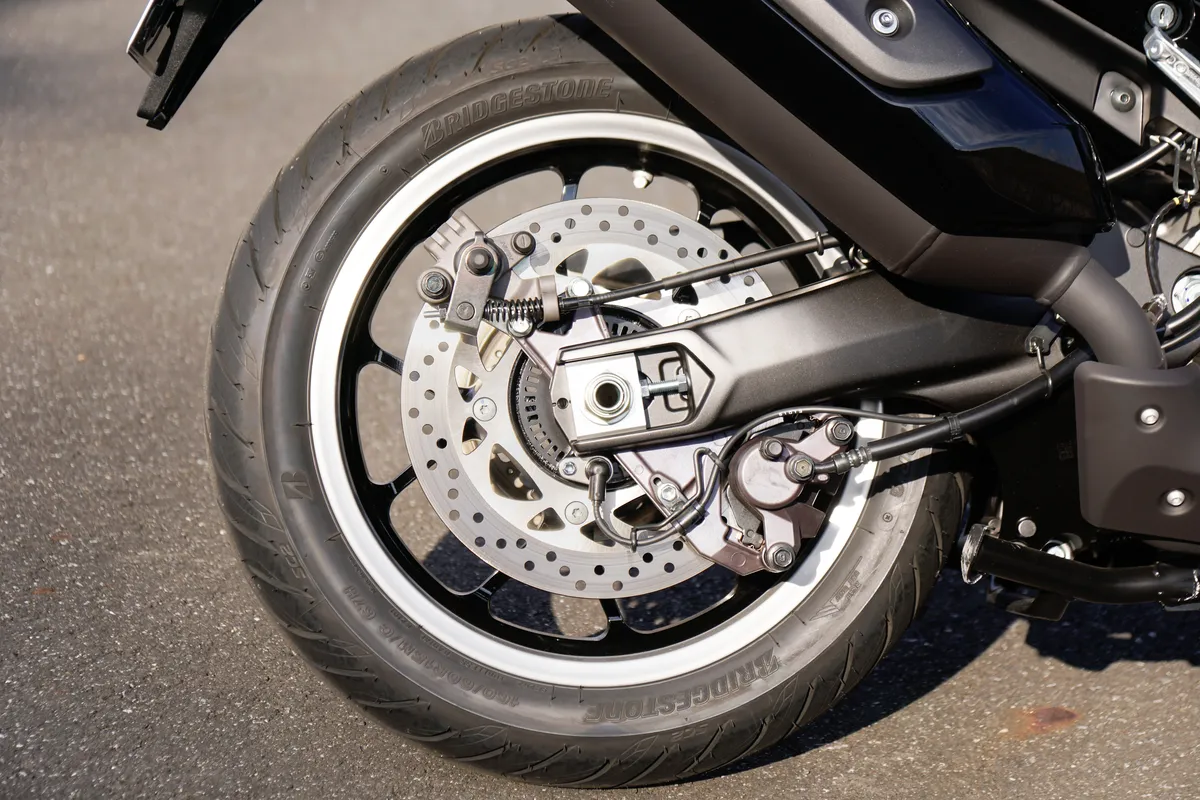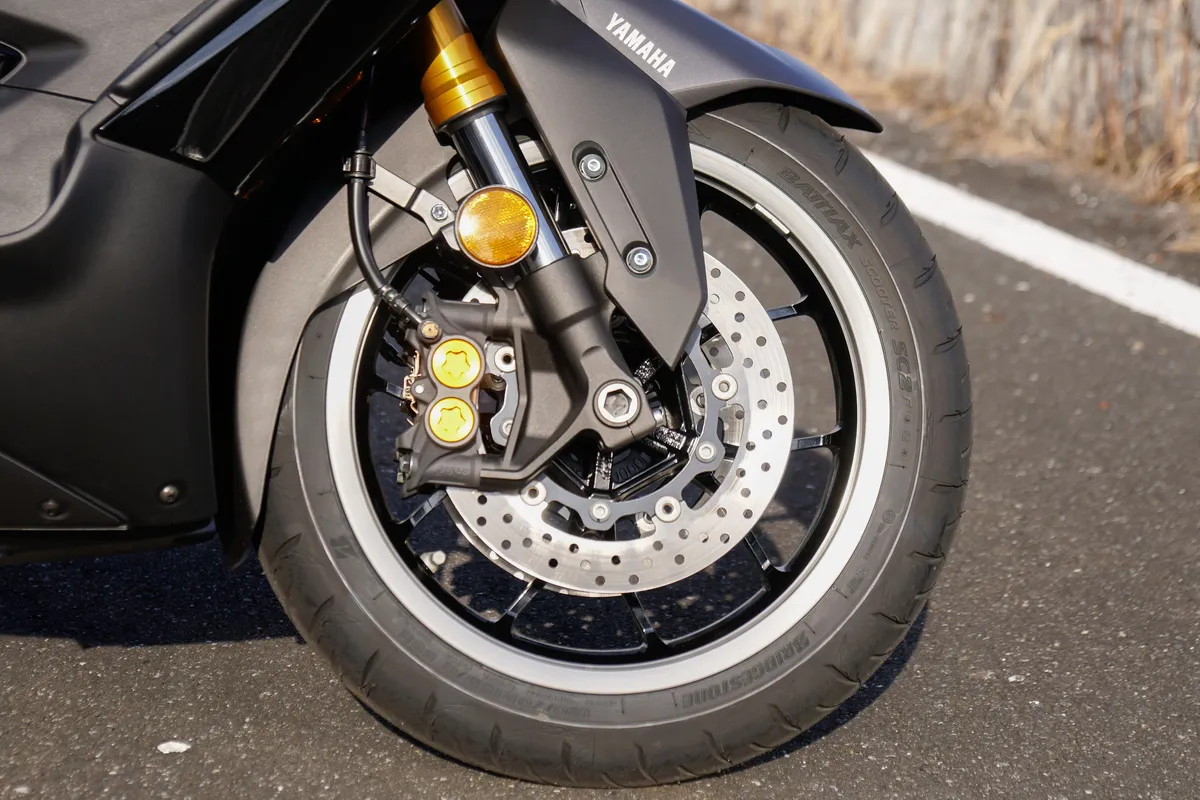 - 除了油壓煞車,還配備鋼索式手煞車。輪胎採用 Bridgestone 製「BATTLAX SCOOTER SC2」。