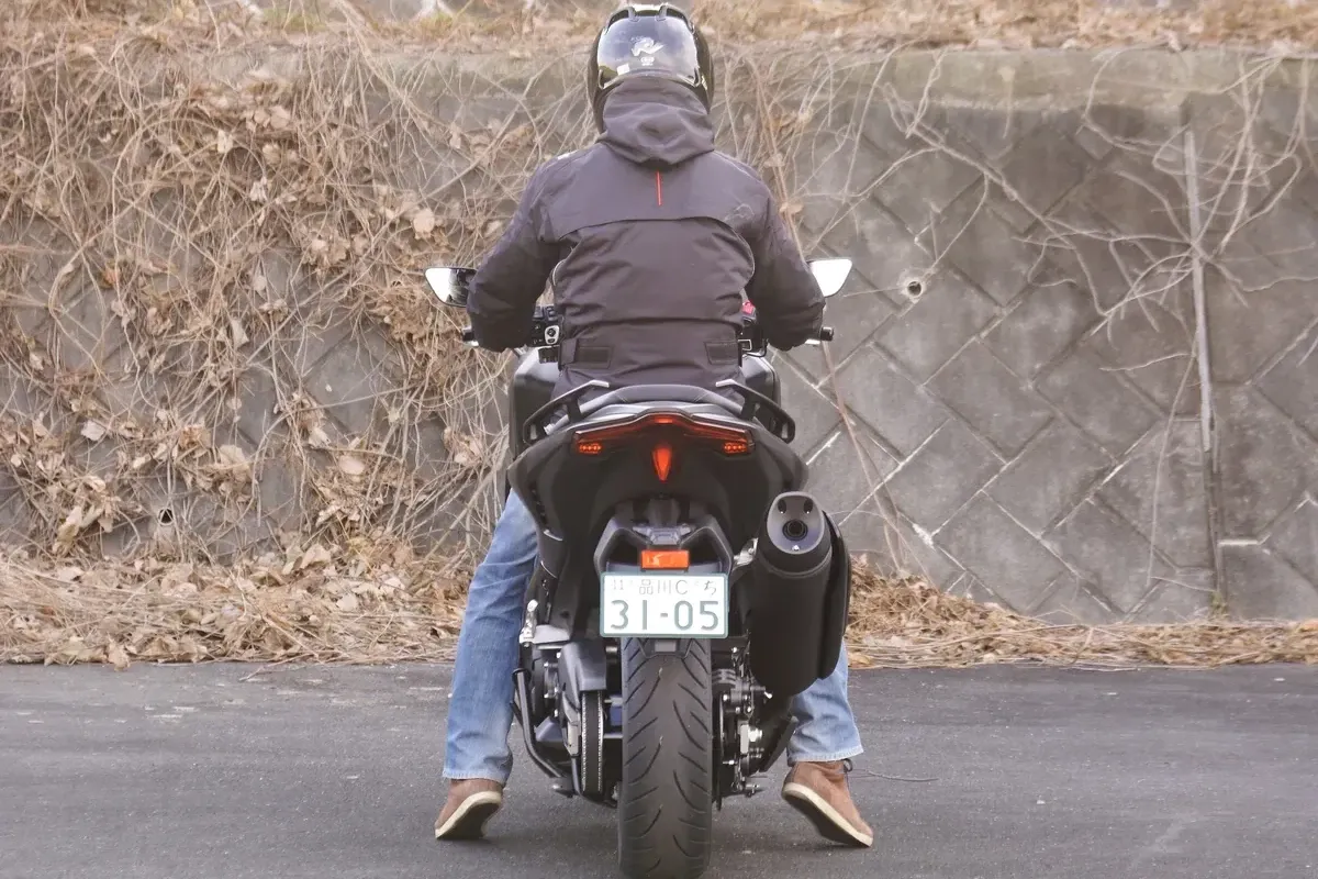 雖然無法像檔車一樣進行標準的膝部夾持,但透過腳踝夾住中央通道,仍能在激烈操駕時穩定車身。前後煞車控制容易、制動力穩定,搭配高剛性車架與懸吊設定,即便在 S 模式下也能維持良好的操控信心。