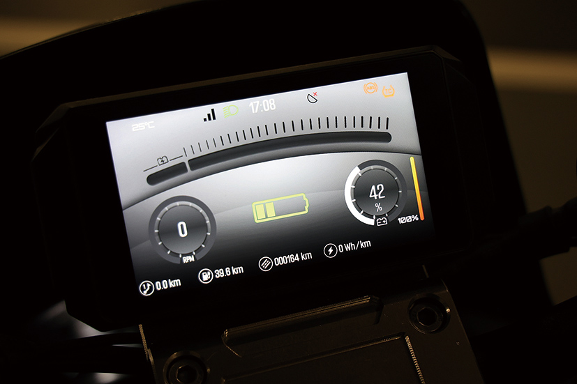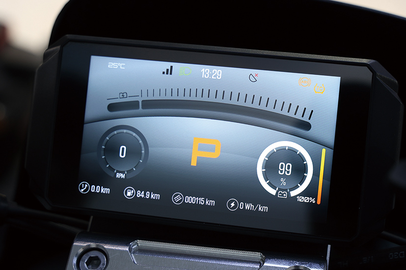STD版配備4.3英吋高清液晶屏,高階的Plus版升級為5英吋高清TFT全彩儀錶板。藍牙及手機APP智慧互聯、除了即時行車資訊外,儀錶板功能包括即時診斷、GPS定位、電池健康報告,甚至遠端鎖定/解鎖功能。