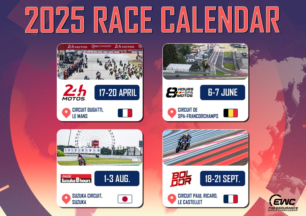 2025年EWC賽季將於4月17-20日以24 Heures Motos(法國利曼)揭開序幕。賽事門票資訊請點此查詢。