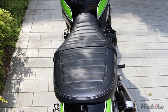 除了坐垫本身的设计极佳以外,具有段差的坐垫以及靠近油箱部分的宽度缩小等都使得Z900RS非常好坐,同时这个设计也大大提升了双脚着地性。