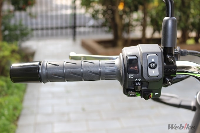 握把上的开关设计十分简洁,位在左侧的箭头符号按钮能够开关循迹控制模式并切换数位仪表板上的显示画面。
