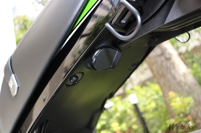 且为了避免刮伤整流罩,行李挂勾的位置没有完全紧贴车身,而是离车身稍微有点距离,这点非常的善解人意。