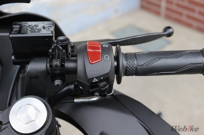 握把附近的按钮开关并没有什么太大改变,但仔细一看可以发现按钮旁边设有后视镜的固定座,由于YZF-R15的后视镜是安装在整流罩上所以没有使用到。虽然不是很显眼,但看起来就是不太帅气。