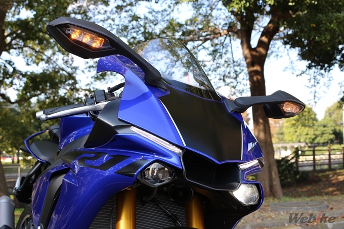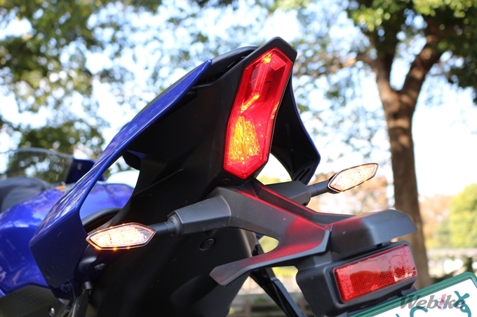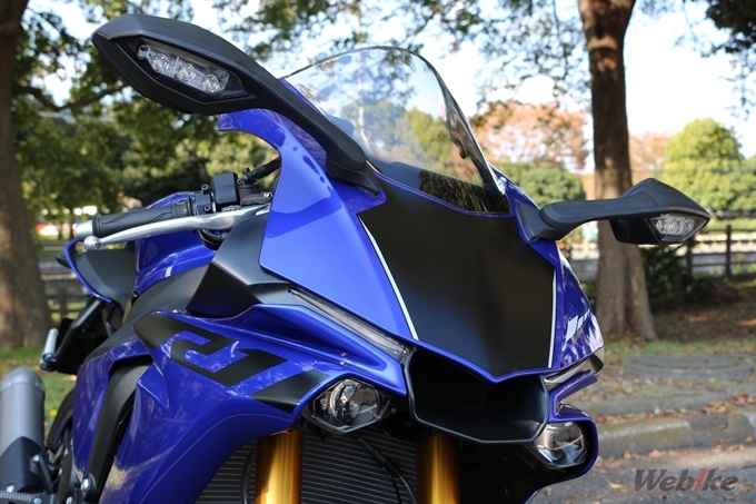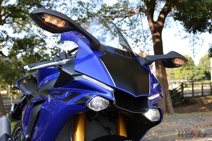 现行款YZF-R1的灯具类全都采用LED灯,并采用与后视镜一体成型的方向灯,定位灯看起很像是细长往上吊的眼睛,头灯则设置在进气导管两侧,乍看之下比较像是雾灯(笑)。