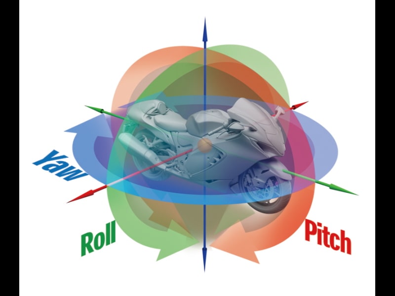 搭载了可以检测出俯仰角(Pitch)、滚动角(roll)、横摆角(yaw)等各方向施力的感应器,与循迹控制系统和引擎煞车控制系统进行连动,让摩托车变得更加安全。