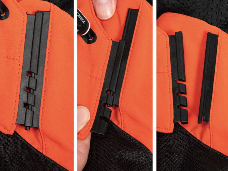适用RS TAICHI推出的TECCELL、CROSSLAY护胸,且固定位置还能借由魔鬼毡进行微调。