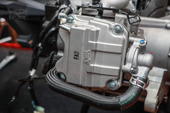 自从 Yamaha Cygnus Gryphus 问世后,国内 125 c.c. 级距运动速克达也进化至“水冷系统”的境界,而 SYM 也从善如流地将旗下 Jet 车款升级为新世代水冷引擎来与之抗衡。沿用自家 158 c.c. 级距顶规车款 DRG BT 的水冷引擎系统,透过排量下修的方式来对应 125 c.c. 级距白热化的竞争。