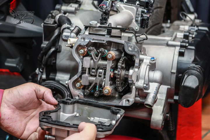 在汽缸头的部分一样采用四汽门滚针摇臂设计,布局与设计与 DRG 完全相同。
