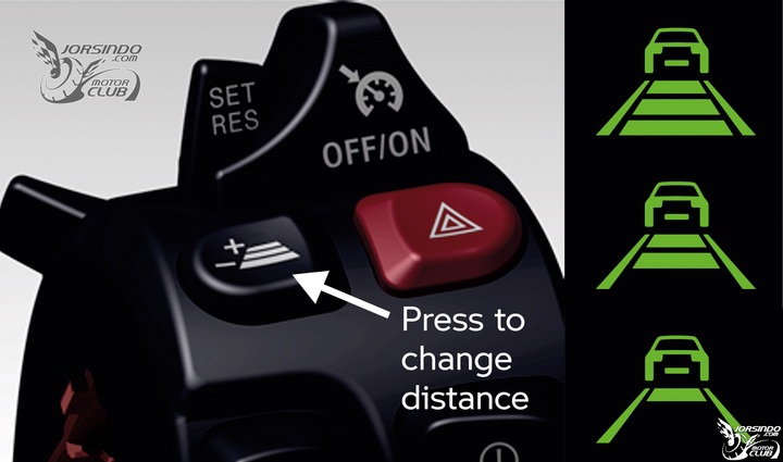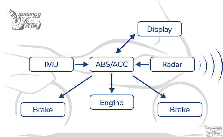 结合了车辆定速巡航系统的 ACC ,利用前方雷达系统的侦测,不仅能设定与前车之间的距离,同时还能自动调节车速,降低骑士在中/高速路况下长时间固定动作的疲惫感并增加行车安全。