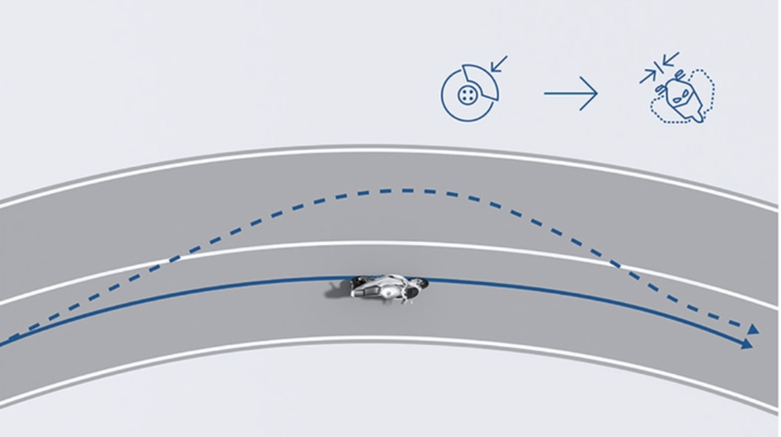 除了可以降低弯中因急煞打滑的风险外,还可以防止油门突然大转而造成的孤轮,更可以有效的防止弯中 Low Side 的状况发生。不管你是用前煞车还是后煞车,BOSCH 弯道煞车系统会自动分配前后煞车力道,让摩托车在任何状况下都保持稳定的行车动态。