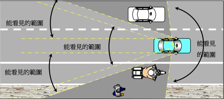 说到盲点侦测系统 (Blind Spot Detection),得先来谈谈什么是“盲点”?所谓的盲点,指的是驾驶人无法透过直接目视或后视镜反射而观察的区域。人类的视野范围约在 150 度左右,大于这角度的视野基本上是看不到的。