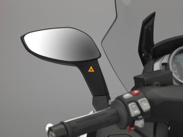 并透过位于后视镜支架上的灯号,提供骑士左右盲区的警示,自此开启了机车盲点系统的滥觞。