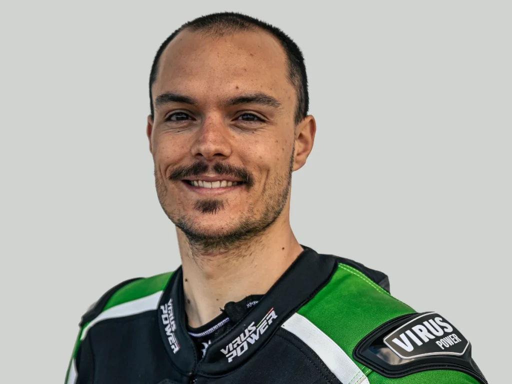 在法国超级摩托车赛中证明了其速度。是一位潜力丰厚的年轻车手。