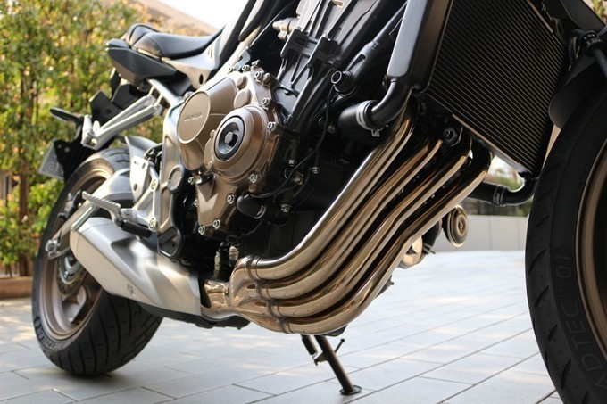 為了凸顯並列四汽缸引擎的存在感及重心集中化,CB650R採用短版排氣管尾段、排列整齊的四齣排氣管頭段,搭配上壯碩的油箱以及跟進氣室合而為一的車身側邊整流罩,這緊湊風格讓CB650R更像是街頭悍將,而不是傳統的街車造型。