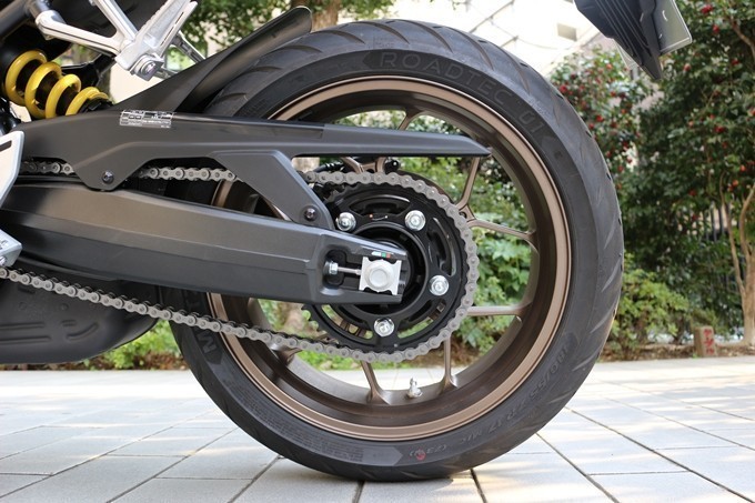 CB650R採用Y型五輻條結構的鋁合金壓鑄輪框,與舊車款相比,前後輪框個減輕了440g及530g,減輕的輪框重量也有助於車輛的操控靈活感。