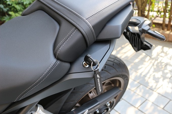 CB650R的坐墊與CBR650R相同皆為分離式的雙人座墊,坐墊側邊也皆有縫線點綴,藉此凸顯高質感。