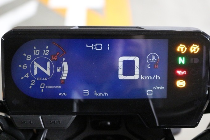 全新設計的全數位儀錶板相當緊湊,有助於減輕把手周圍重量,但這個儀錶板的功能相當齊全,左半邊為圓形設計、中間包覆檔位顯示的類指針式轉速表,其餘面積包含時速、總里程、單次里程、水溫、時間等訊息相當齊全,最右側則是包含換檔指示燈在內的指示燈號。