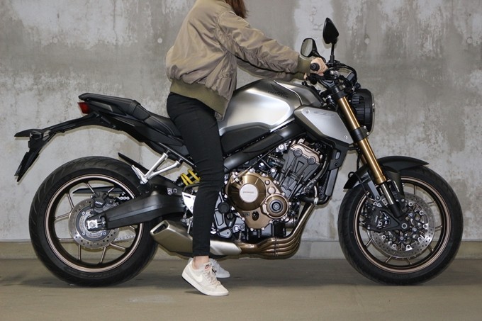 CB650R那810mm的坐墊高度在大型車款中相對偏低,雖然是搭載寬度較寬的並列四缸引擎,但雙腳著地性還是相當好,就算是身高僅161cm的騎士,雙腳腳尖仍能支撐住車身,身高173cm的騎士則是連腳跟都能完整踩在地上。