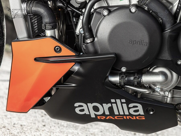 標誌性的水冷 V 型四缸引擎符合歐盟五期排放法規,同時在性能輸出上維持 175 匹馬力以及 121 牛頓米的優異水準,猛暴的性能讓 Tuono V4 擠身街頭霸王前段班。