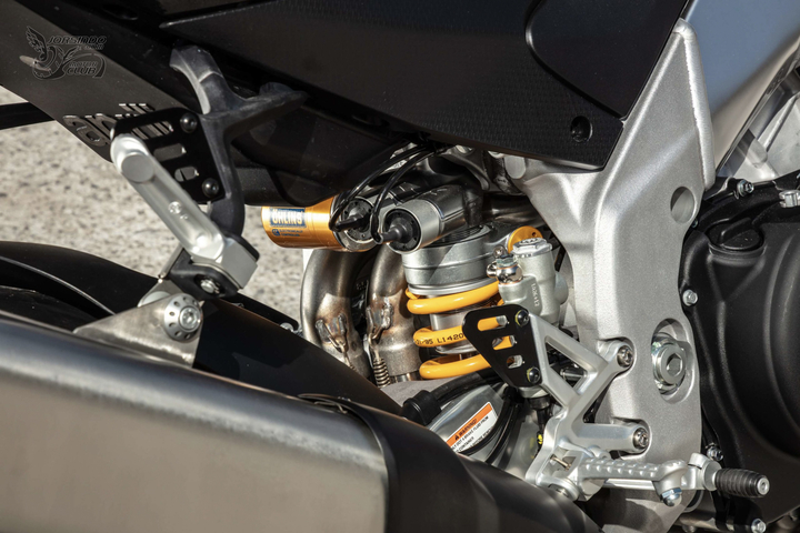 Tuono V4 Factory 配備高階的 Öhlins NIX 43mm 電子倒立式前叉,後懸吊則是 Öhlins TTX 中置懸吊,搭配 Smart EC 2.0 電子懸吊系統。