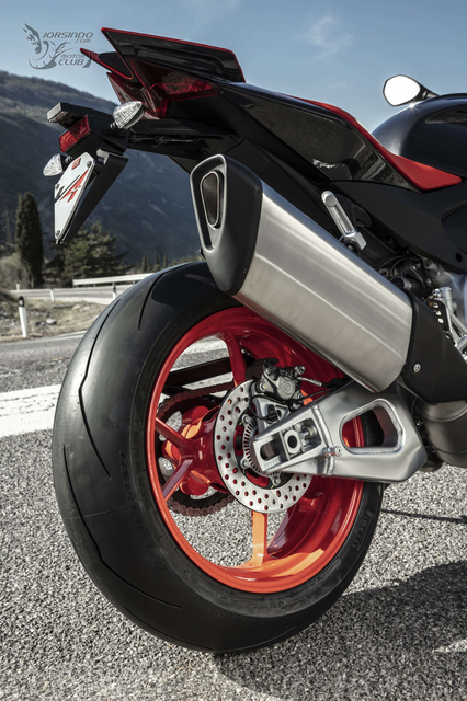 與 RSV4 採用相同的搖臂設計,透過大量參賽經驗下獲得全新的材質應用技術,兼顧輕量化以及穩定性讓 Tuono V4 更易於操控。