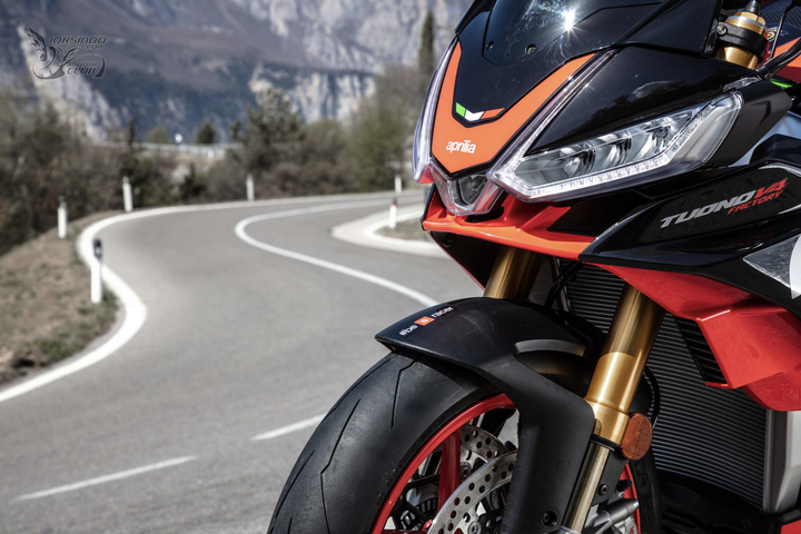 最明顯的地方在於車頭,兩者雖然同樣換上新式樣的三眼頭燈,但是著重休旅取向的 Tuono V4 配備較大面積的風鏡,用以減少騎士長時間逆風所承受的壓力。