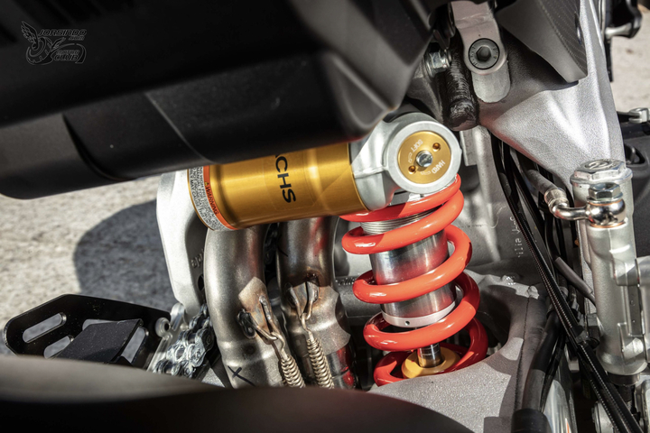 與 Factory 版本不同,Tuono V4 採用 SACHS 的手動全可調中置避震。