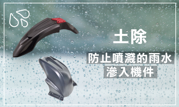 裝上較長的土除、內土除可以防止亂噴濺的雨水滲入機件導致電路短路或故障。
