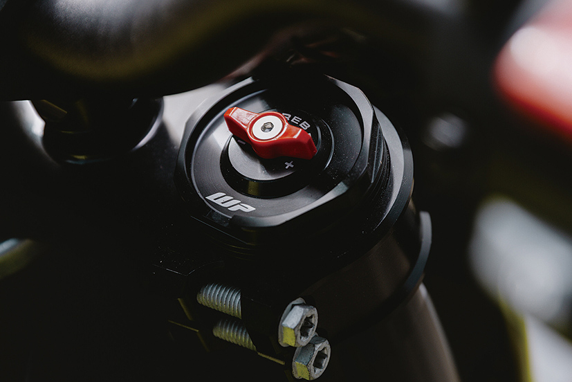 後懸掛系統︰WP Apex Pro-Lever多連桿單筒油壓彈簧,行程240mm