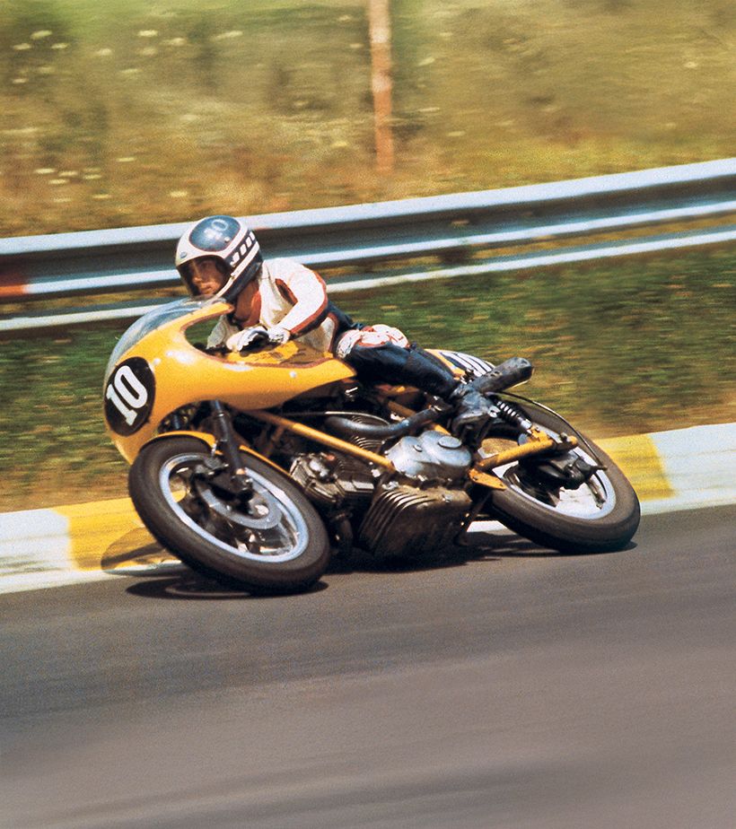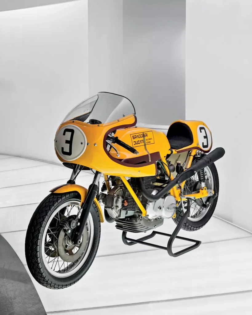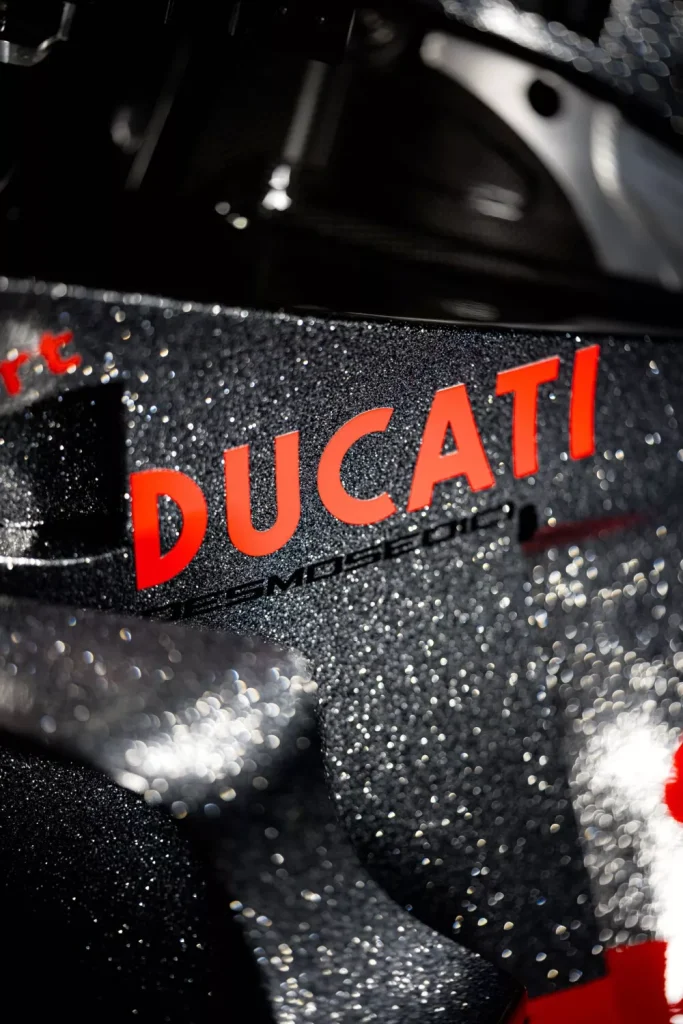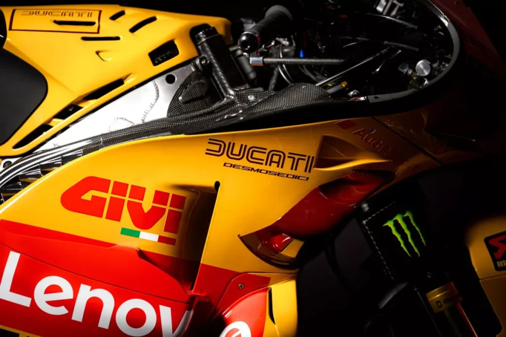 這項致敬設計,由Francesco Bagnaia與Nicolò Bulega兩位車手,透過他們的Desmosedici GP賽車在賽道上呈現。前者的塗裝設計,靈感來自1972年伊莫拉200英里賽事(Autodromo Enzo e Dino Ferrari 伊莫拉賽道)的傳奇戰駒「750 Imola Desmo」——當年由Paul Smart與Bruno Spaggiari駕駛該車,以冠亞軍包辦的歷史性戰績,使其成為不朽經典。後者則採用了1975年Franco Uncini 贏得義大利750cc冠軍時所駕駛的「750 Supersport Desmo」的配色。