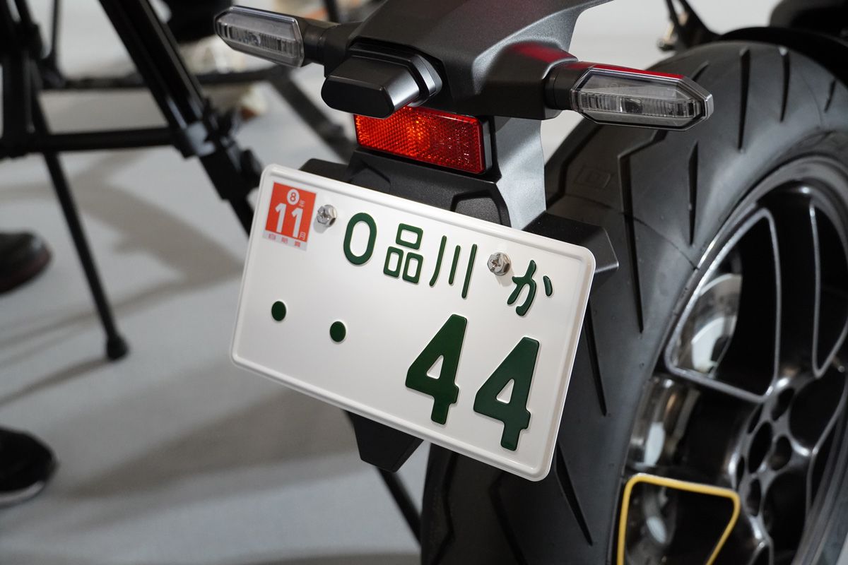 - 通常輕型二輪車標示為「1」的車牌分類編號,此車為「0」。這是代表尚未取得日本國內型式認證之特例措施的識別。