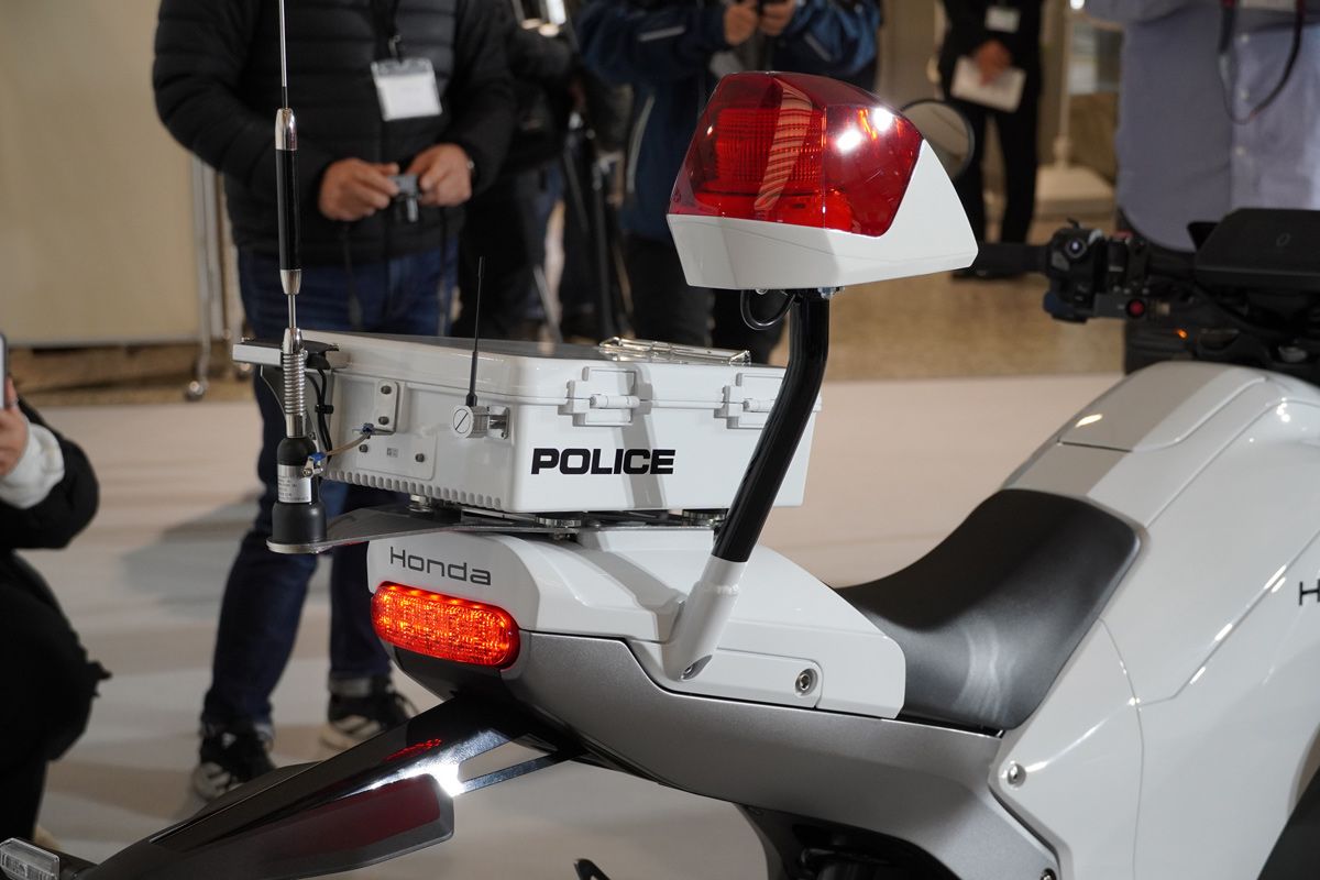 在這次活動中,我們也有機會訪問到 Honda WN7 的研發負責人田中幹二先生。他指出,電動車適合行駛距離固定且短程的警巡任務。WN7 警車版車輛並未進行大幅度的改造或變更,僅加裝警示燈、警笛及公發後箱,並在把手周圍增設操作開關。相較於現役的 NT1100P 或CB1300等車款,WN7 輕了約 18kg,車重約 235kg,具備 600cc 級距馬力與1000cc 公升級扭力,試乘警官表示,車輛安靜、低振動、無離合器操作便利,輕巧機動性佳。